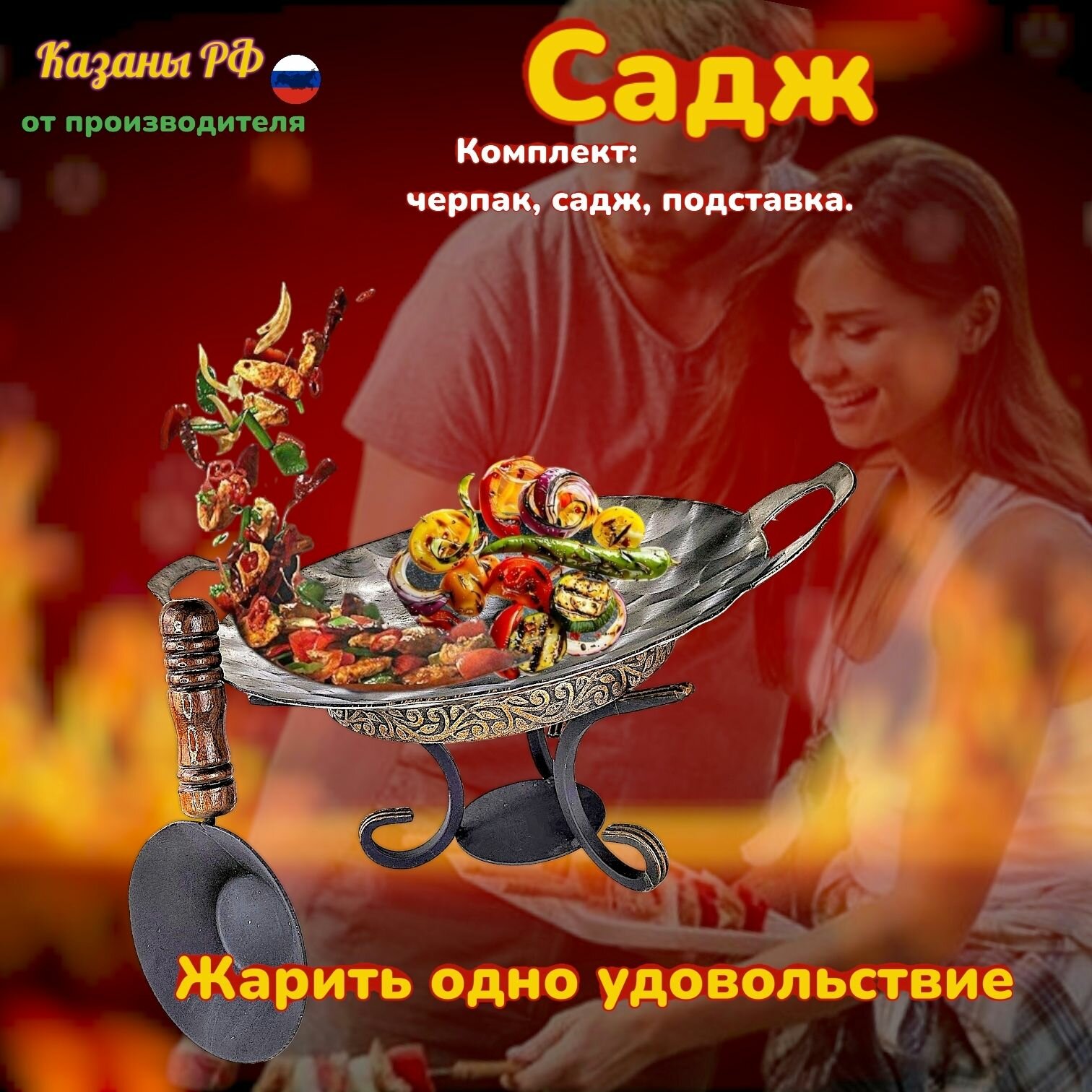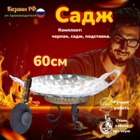 Купить Комплект Подставка с черпаком+Садж из нержавеющей стали плоский 60см. КазаныРФ с доставкой по всей России.