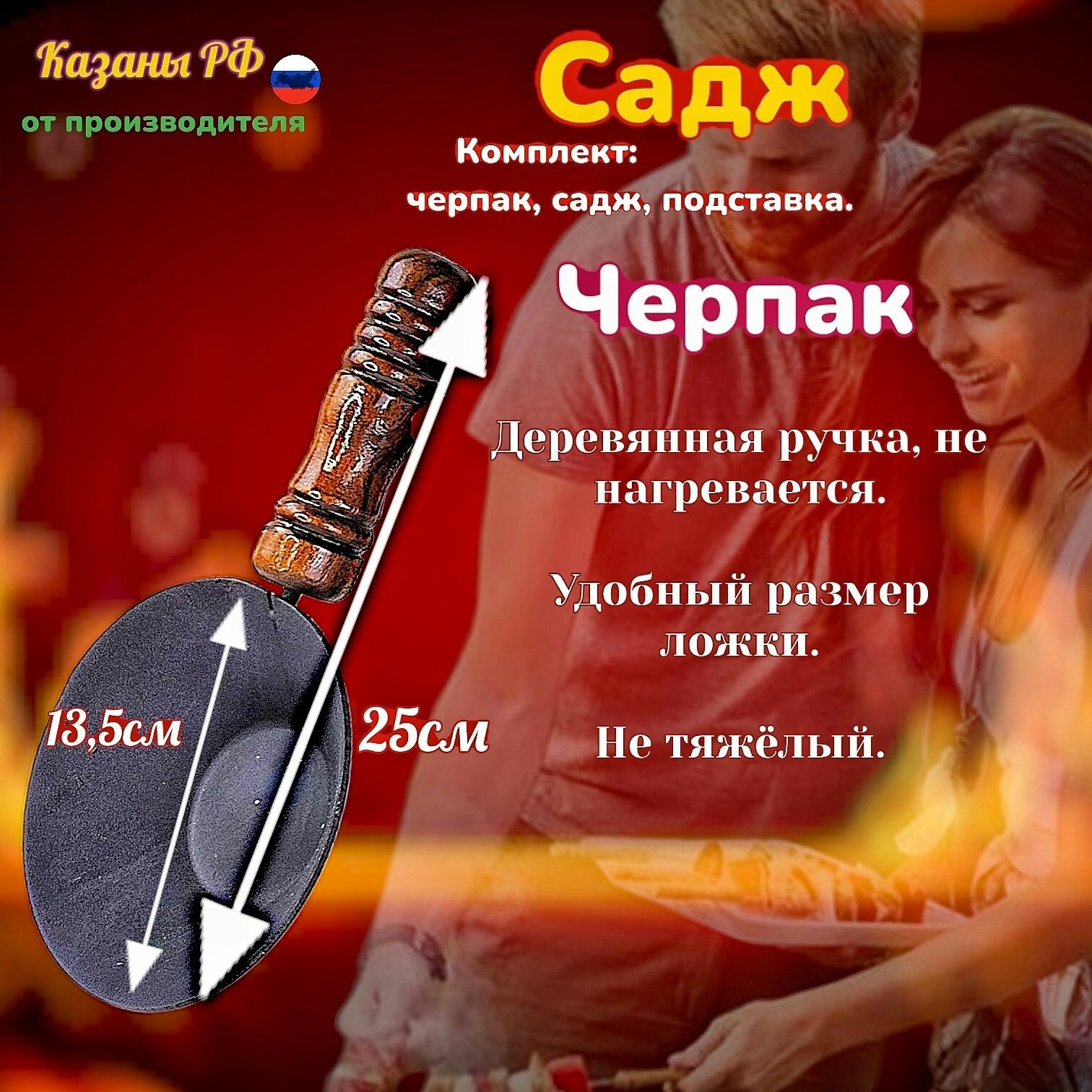 Комплект Подставка с черпаком+Садж из нержавеющей стали плоский 60см. КазаныРФ: сравнение цен, характеристики, фото, актуальное наличие и цены.