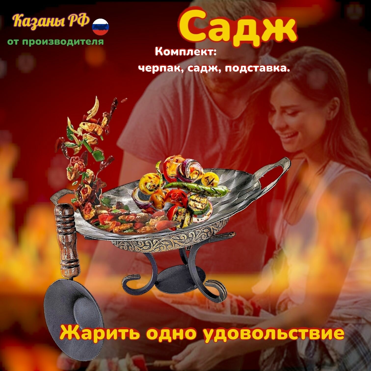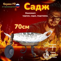 Комплект Подставка с черпаком+Садж из нержавеющей стали плоский 70см. КазаныРФ: сравнение цен, характеристики, фото, актуальное наличие и цены.