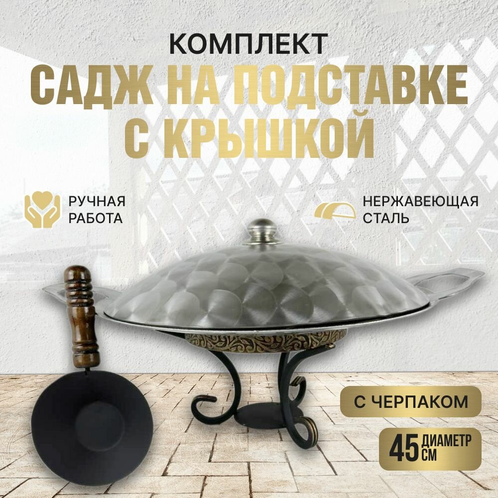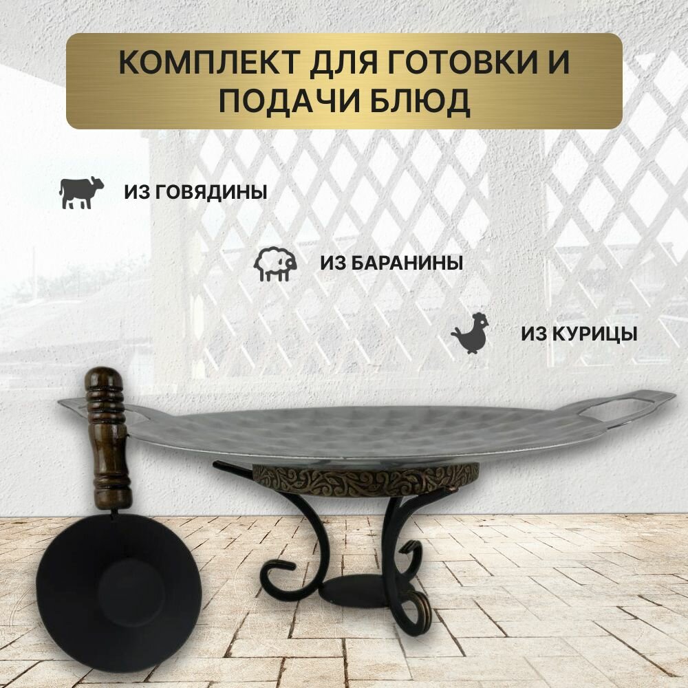 Комплект Подставка с черпаком/Садж из нержавеющей стали плоский/Крышка из нержавеющей стали 44 см. КазаныРФ: сравнение цен, характеристики, фото, актуальное наличие и цены.