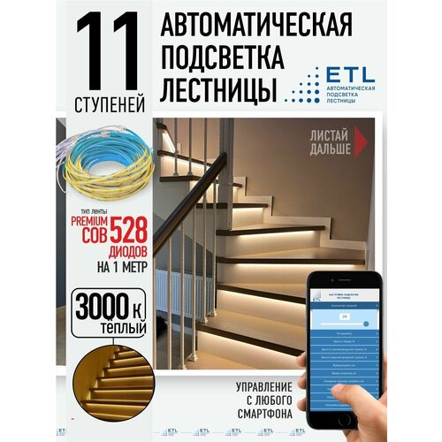 Купить Комплект подсветки лестниц ETL ,11 ступеней с COB лентой, 3000К с доставкой по всей России. Комплект подсветки лестниц ETL ,11 ступеней с COB лентой, 3000К: сравнение цен, характеристики, фото, актуальное наличие и цены.