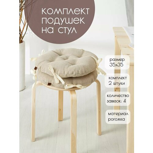 Комплект Круглых подушек на стул 35х35 (2 шт), Цвет Бежевый, С Четырьмя Завязками. Мягкая круглая подушка на стул – комфорт для вас и вашей семьи! Создайте уют и удобство в доме с нашей круглой подушкой на стул. Эта мягкая и стильная сидушка обеспечит комфортное сидение за столом, будь то семейный ужин, детские занятия или вечернее чаепитие. Идеально для мам и детей: Женщины с детьми знают, как важно, чтобы мебель была удобной и безопасной. Наши подушки на стулья подходят для всей семьи: они мягкие, приятные на ощупь и легко чистятся. Дети смогут комфортно сидеть за столом, а вам будет приятно наслаждаться отдыхом. Универсальность и практичность: Размер: 35 см – оптимальный для большинства стульев и табуретов. Комплектация: в наборе 2 шт – отлично для пары стульев или табуретов. Подходит для любого интерьера: используйте сидушки на стулья для кухни, гостиной или рабочего места. Выбирайте подушки на стулья круглые и создавайте уют в доме!