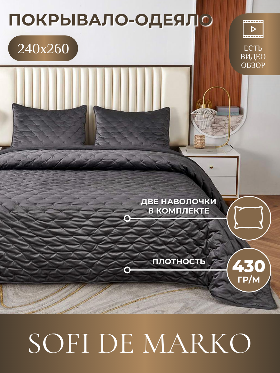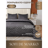 Купить Комплект Sofi De Marko Leia, покрывало и наволочки, евро, вискоза 100%, стеганые, антрацитовые с доставкой по всей России.
