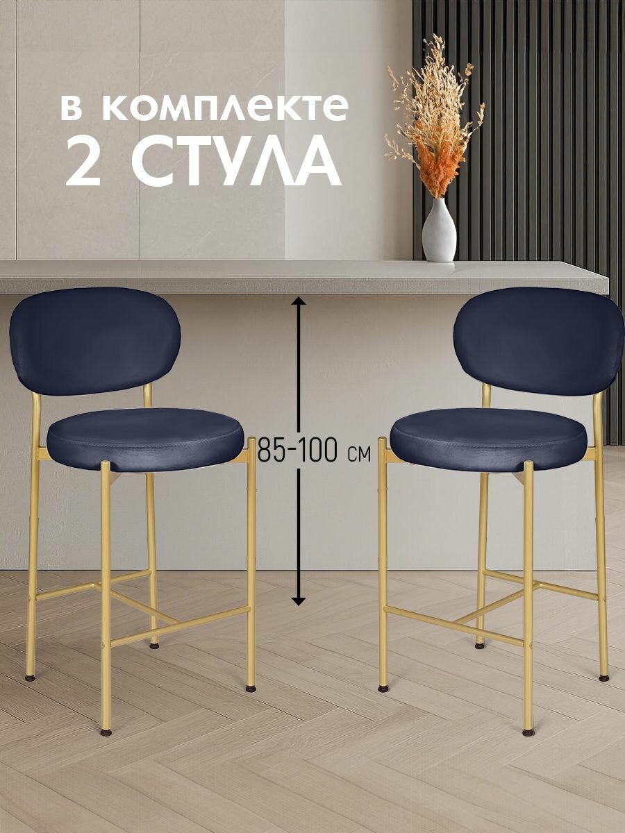 Комплект полубарных стульев с мягким велюровым сиденьем и спинкой — функциональное решение для кухни, гостиной или домашнего бара. Стильный современный дизайн с изящной округлой спинкой и металлическими ножками отлично впишется в любой интерьер, а широкий выбор расцветок позволит подобрать вариант на вкус. Оптимальная высота подходит для барной стойки 90–110 см, обеспечивая удобство во время трапез или общения. Прочные материалы гарантируют устойчивость, износостойкость и долгий срок службы, а мягкая обивка приятна на ощупь.