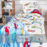 Купить Комплект постельного белья, для детей, Guten Morgen, Бязь, рис.1065, Аnimal traffic, 1.5 сп. с 1 нав. 70х70 см с доставкой по всей России.
