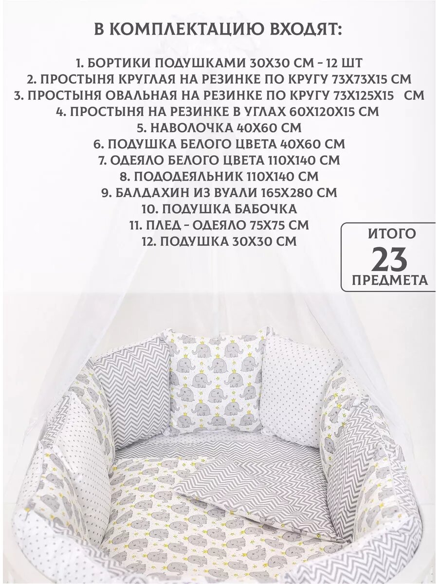 1. Бортики-подушки, словно облака, размером 30х30 см – 12 шт, для создания уютного кокона.
