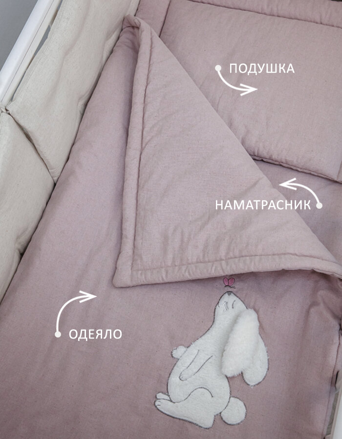Комплект постельного белья Kiriya Kids «Зайчонок», для новорожденных, гипоаллергенный, светло-розовый: сравнение цен, характеристики, фото, актуальное наличие и цены.