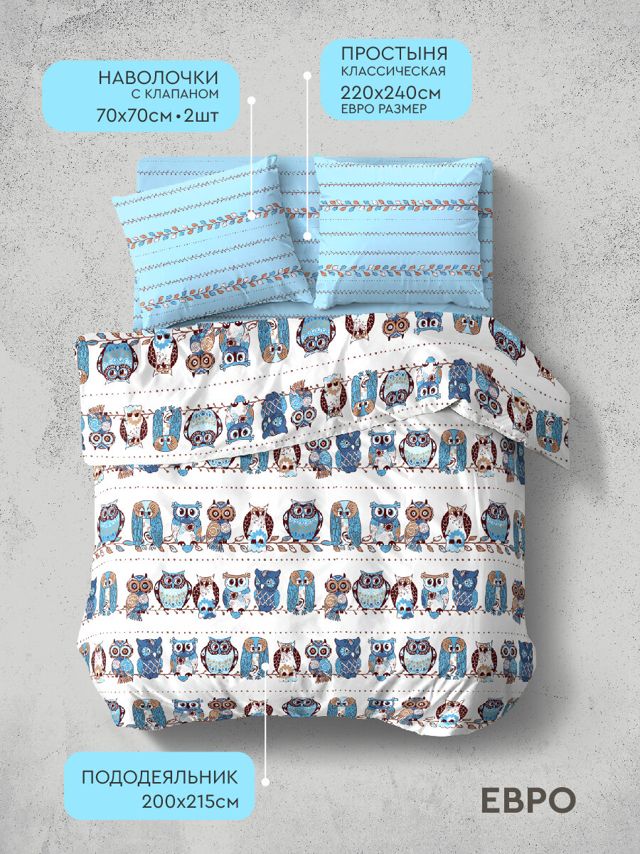 Комплект постельного белья евро размер выполнен из натуральной ткани бязь 100% хлопок, которая идеально подходит для постельного белья. Ткань из хлопкового волокна отличается гипоаллергенностью и гигиеничностью. Она приятна к телу, отлично пропускает воздух, не электризуется. Бязь отличается высокой износостойкостью за счет полотняного переплетения нитей одинаковой толщины. Комплект постельного белья из бязи плотностью 120 гр/м2 выдерживает максимальное количество стирок, поэтому ваше белье прослужит долго.