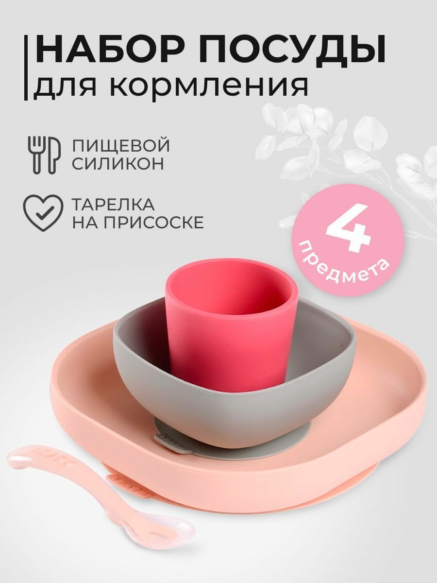 BEABA набор силиконовой детской посуды: 2 тарелки на присоске, стакан силиконовый, ложка детская для кормления и прикорма: сравнение цен, характеристики, фото, актуальное наличие и цены.