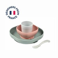 BEABA набор силиконовой детской посуды: 2 тарелки на присоске, стакан силиконовый, ложка детская для кормления и прикорма