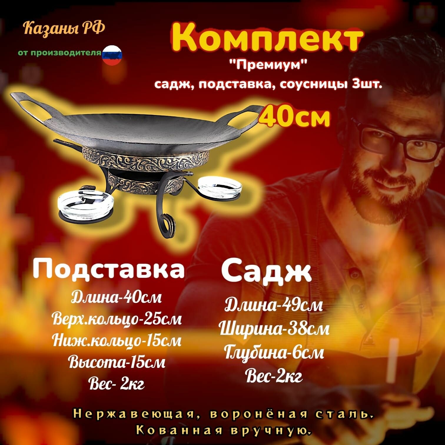 Комплект «Премиум без крышки»/воронёный садж40см+подставка+соусницы3шт/Казаны РФ: сравнение цен, характеристики, фото, актуальное наличие и цены.