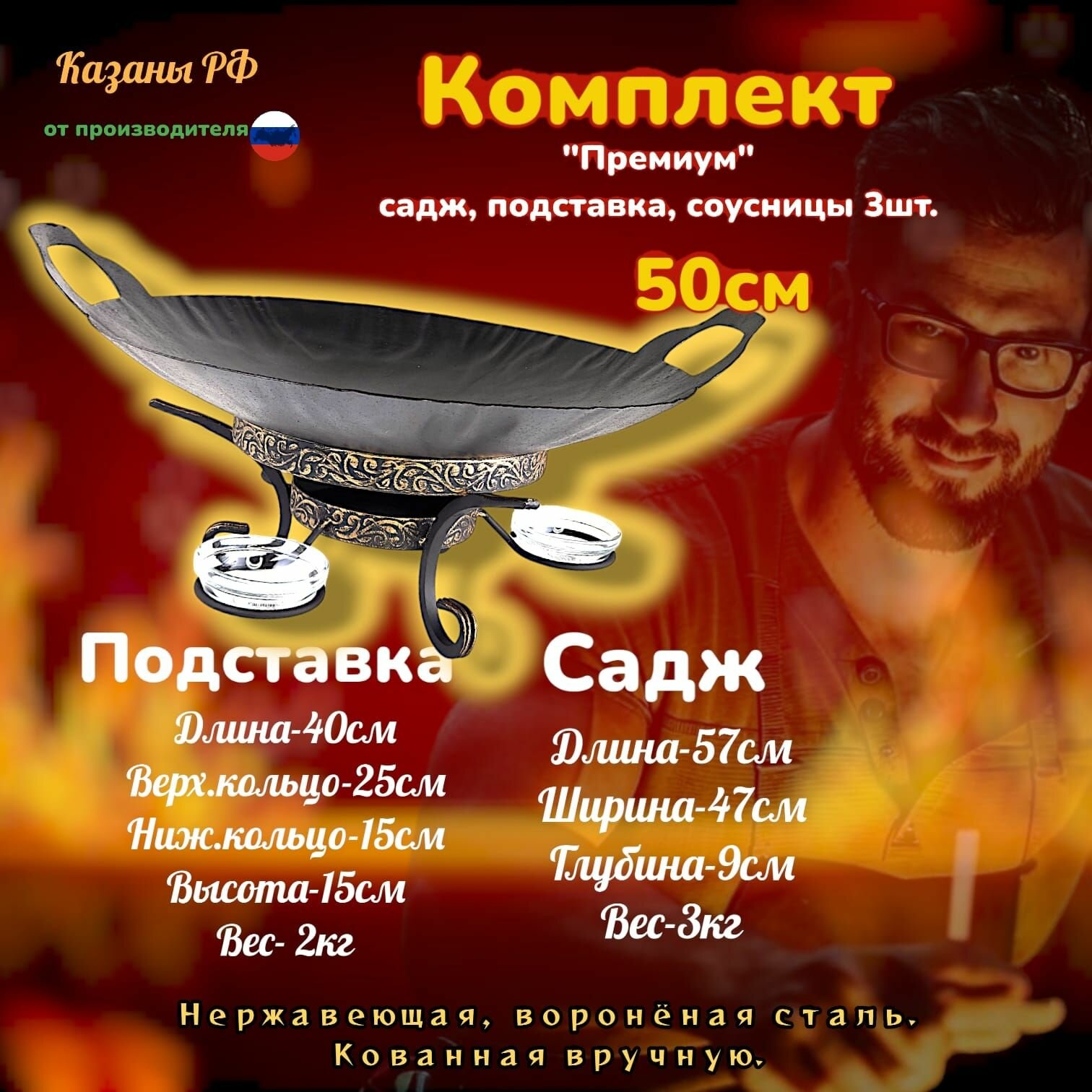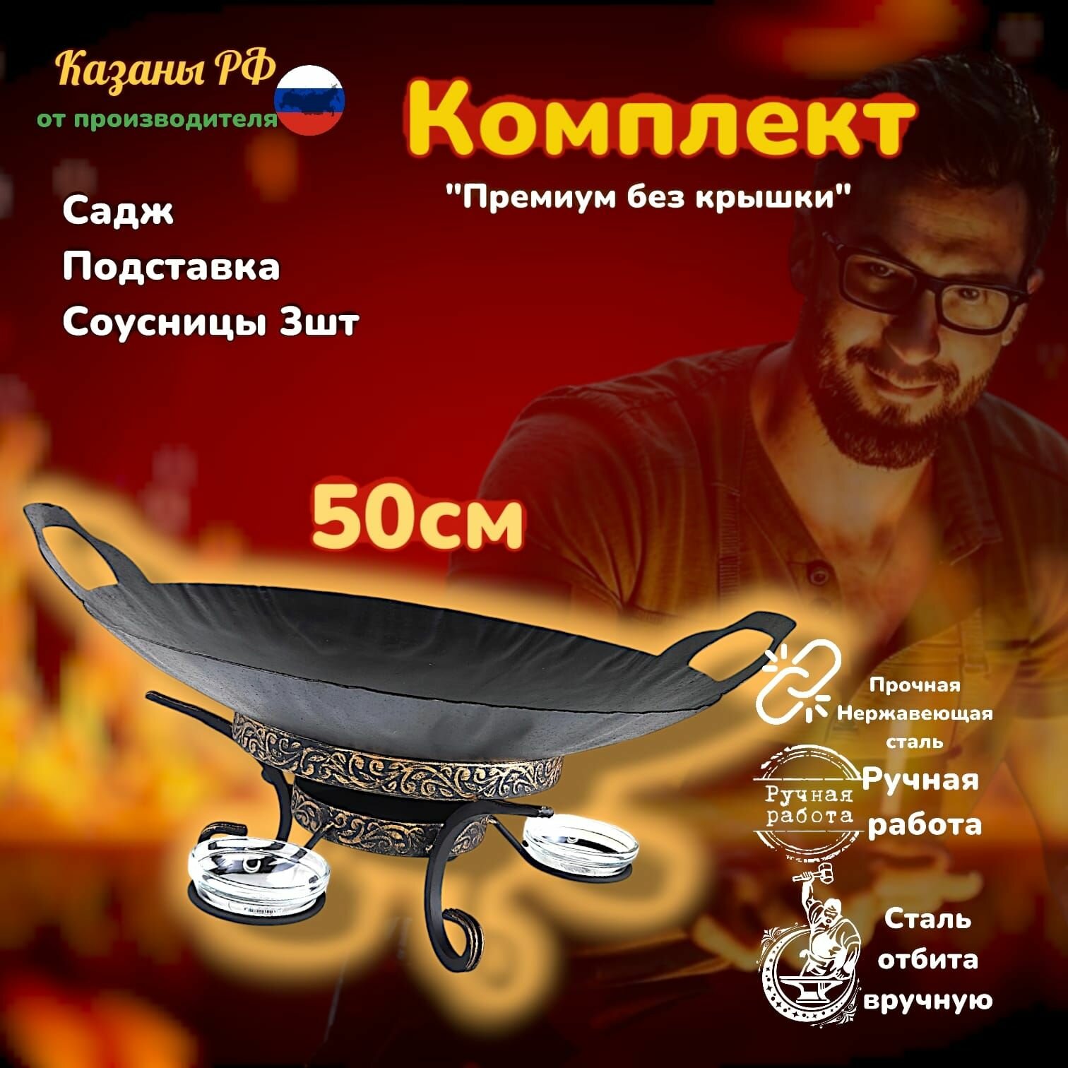 Комплект «Премиум без крышки»/воронёный садж50см+подставка+соусницы3шт/Казаны РФ: сравнение цен, характеристики, фото, актуальное наличие и цены.