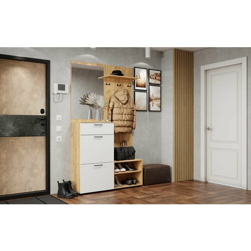Прихожая с зеркалом комплект мебели Дуб Крафт Золотой/Белый Гладкий, монтана, 120х35х210 см Стиль: сравнение цен, характеристики, фото, актуальное наличие и цены.