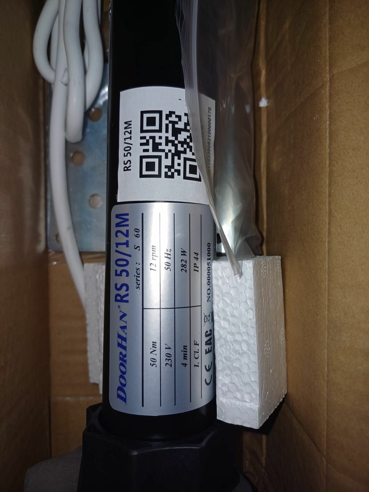 Комплект внутривального электропривода с пластинами крепления и адаптерами на вал 60 мм, с аварийным открыванием и петлёй PP200, для рольставен RS50/12MKIT Doorhan .
