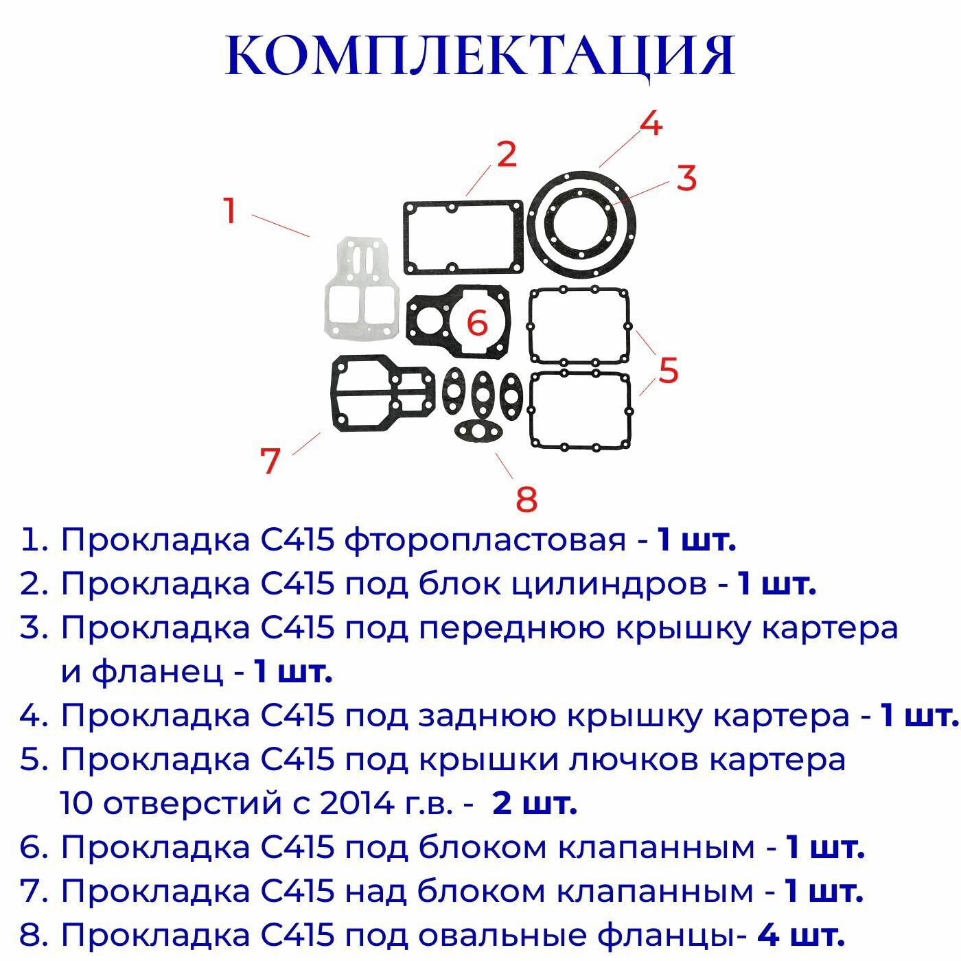 Купить Комплект прокладок для поршневого компрессора С415М (с 2014 года) с доставкой по всей России.