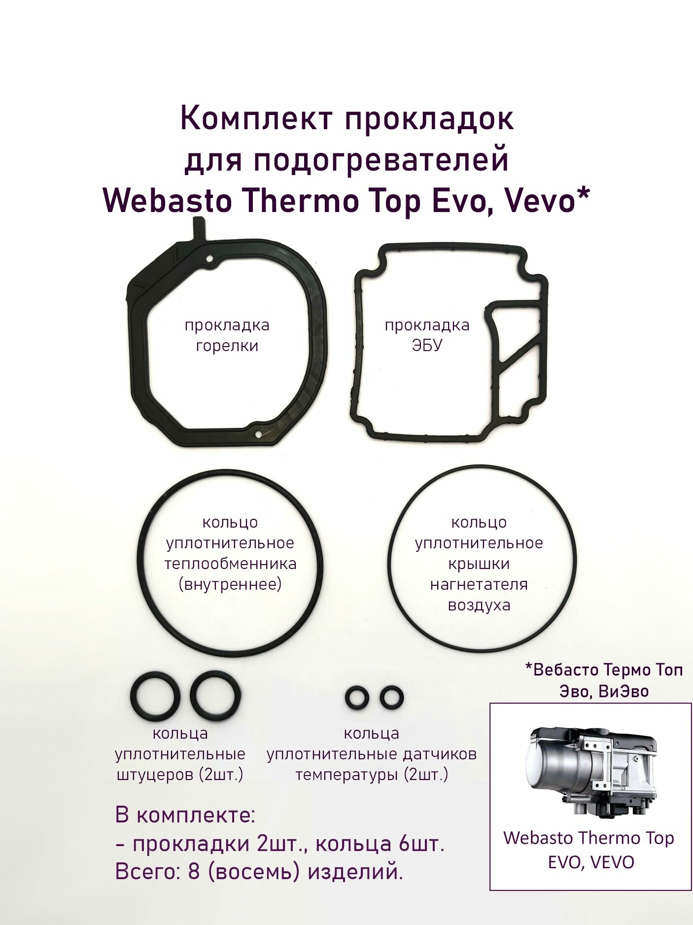 Комплект прокладок для ремонта предпусковых подогревателей Webasto Thermo Top EVO Start, Comfort; VEVO; (Вебасто Термо Топ Эво Старт, Комфорт, ВиЭво).: сравнение цен, характеристики, фото, актуальное наличие и цены.