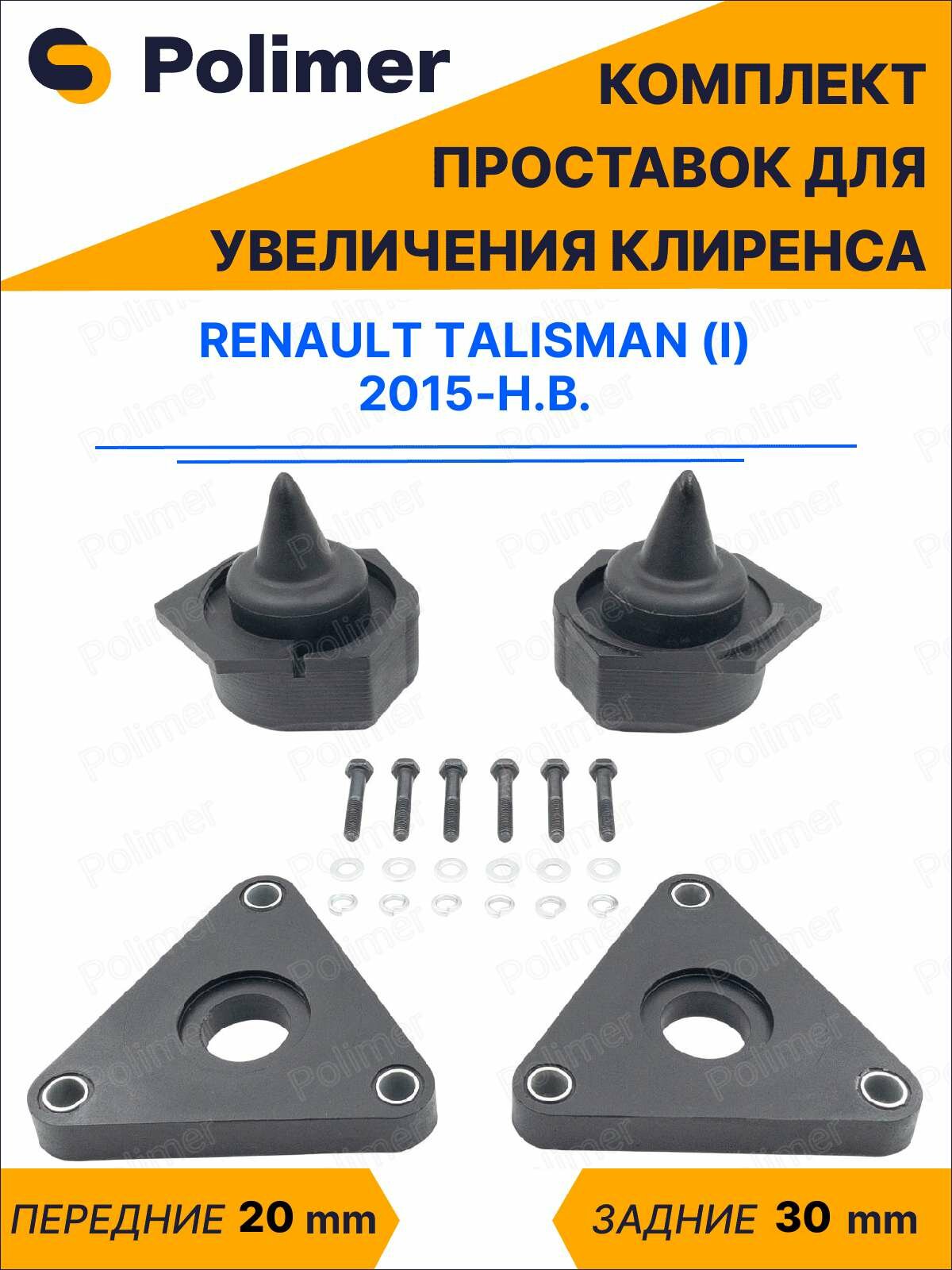 Купить Комплект проставок увеличения клиренса RENAULT TALISMAN (I) 2015-Н. В. — полиуретан, передние 20 мм, задние 30 мм с доставкой по всей России. Комплект проставок увеличения клиренса RENAULT TALISMAN (I) 2015-Н. В. — полиуретан, передние 20 мм, задние 30 мм: сравнение цен, характеристики, фото, актуальное наличие и цены.
