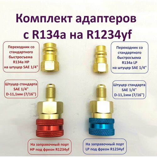 Быстросъемные переходники (комплект быстросъемных муфт) для подсоединения к сервисному порту для заправки и диагностики автомобильных кондиционеров, работающих на фреоне R1234yf