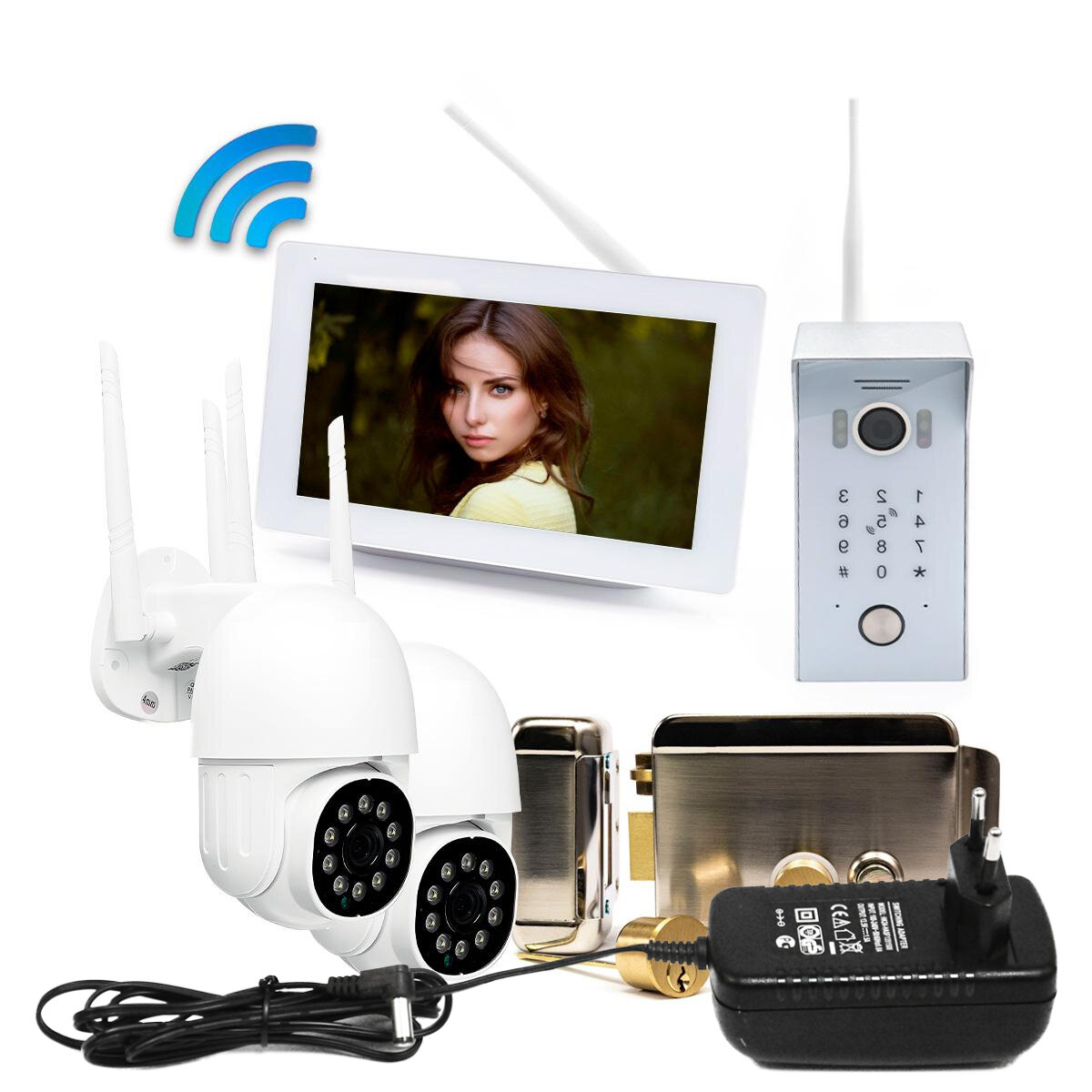 Купить Комплект радиоканальный Wi-Fi HD видеодомофон и электромеханический замок AX042 — SkyNet-700-Tuya (1+2+AX042)-Tuya (E2123EU) ДВЕ уличные 5mp поворотн с доставкой по всей России.