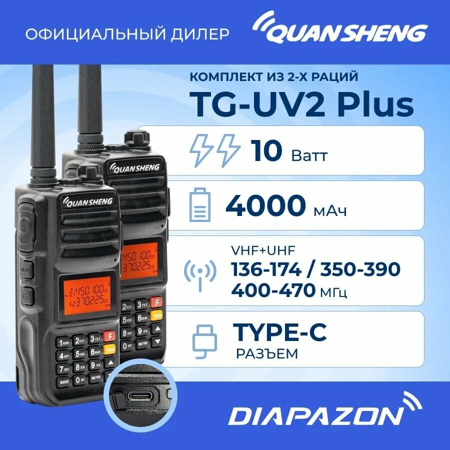 Купить Комплект раций QUANSHENG TG-UV2 Plus TYPE-C 2 шт, 10 Ватт (супергетеродинный приемник) с доставкой по всей России.