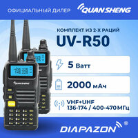 Купить Комплект раций QUANSHENG UV-R50 2 штуки, 5 Ватт, 2000 мАч, IP-56 с доставкой по всей России.