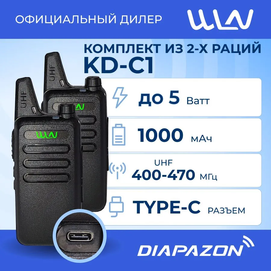 Купить Комплект раций WLN KD-C1 2 штуки, TYPE-C, без зарядных стаканов с гарнитурами с доставкой по всей России.