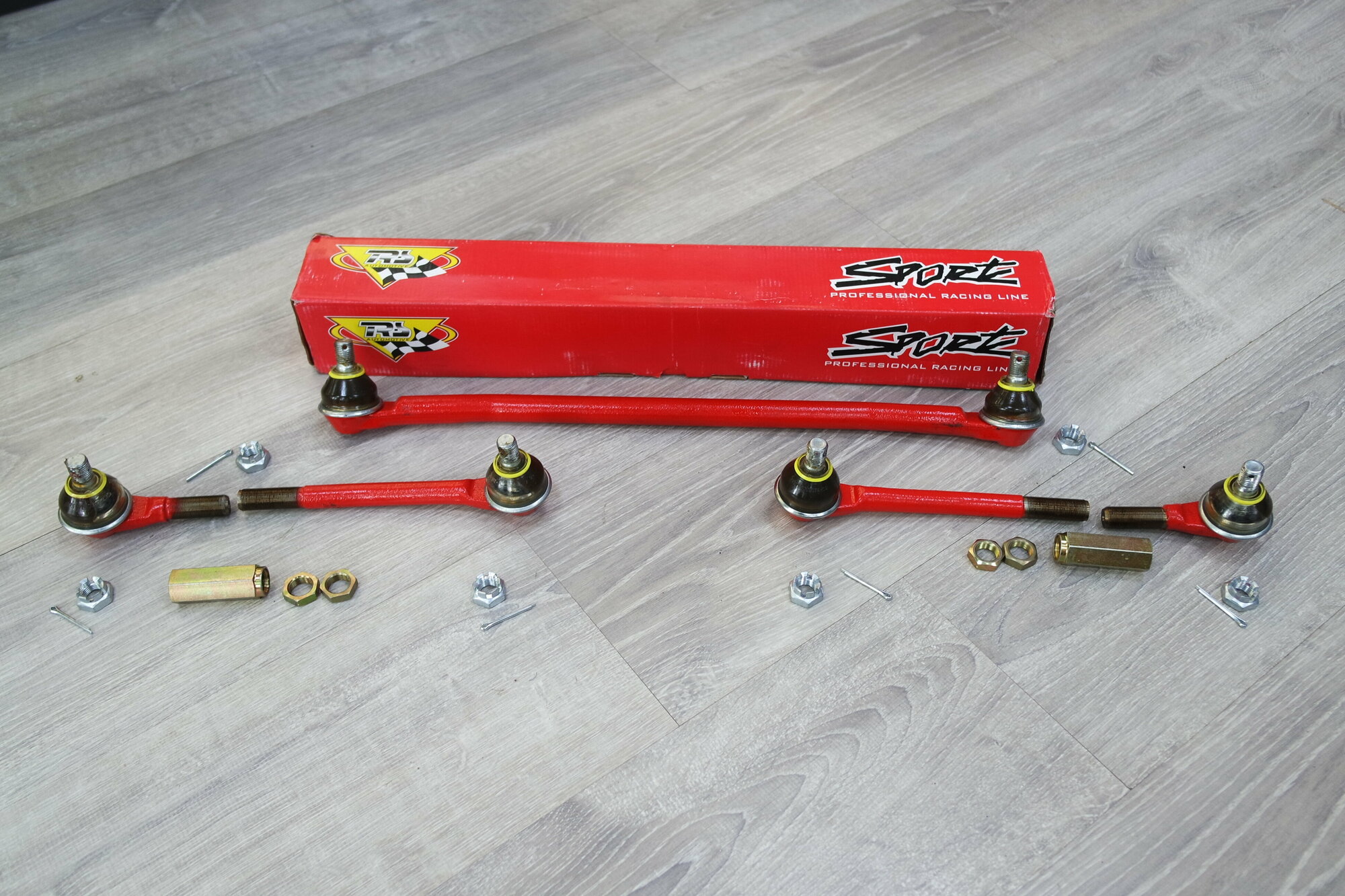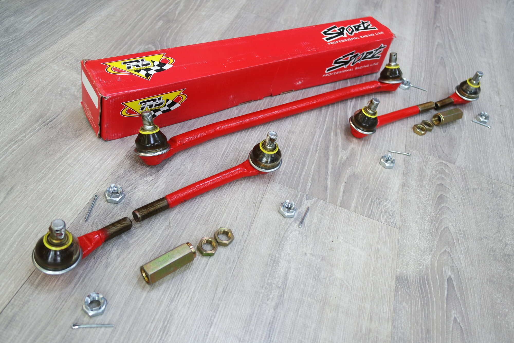 Состав комплекта: Центральная рулевая тяга х 1 Наконечники х 4 Рулевые сгоны х 2 Хомута с болтами и гайками х 4 Корончатые гайки х 6 Стопорные штифты х 6