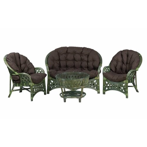 Комплект с 2хместным диваном и круглым столом из натурального ротанга Черчиль, цвет олива, подушки коричневые: сравнение цен, характеристики, фото, актуальное наличие и цены.