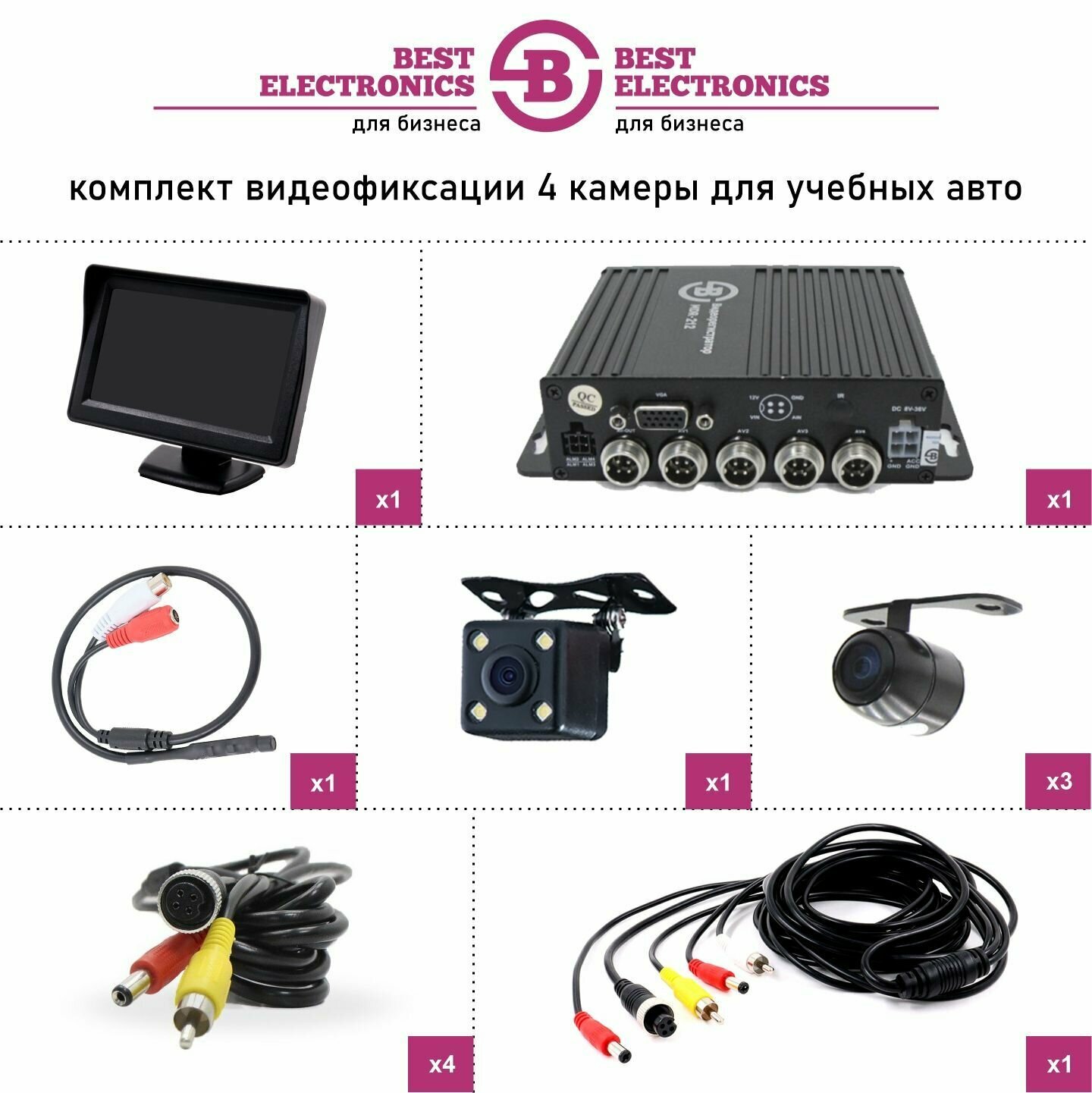 Комплект с монитором 4 камеры для видеонаблюдения и видеофиксации в учебных автомобилях: сравнение цен, характеристики, фото, актуальное наличие и цены.
