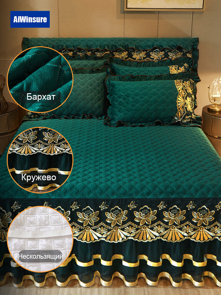 Представляем вашему вниманию комплект бархатных покрывал AiWinsure, которые идеально подойдут для того, чтобы привнести нотку роскоши в вашу спальню. Высококачественная стеганая ткань и кружевная вышивка не только добавляют элегантности, но и обеспечивают долговечность и мягкость для комфортного ночного сна. Кружевные оборки придают покрывалу шик и женственность, создавая теплую и располагающую атмосферу. Наше постельное белье, изготовленное из высококачественных бархатных материалов, одновременно теплое и дышащее, идеально подходит для зимы