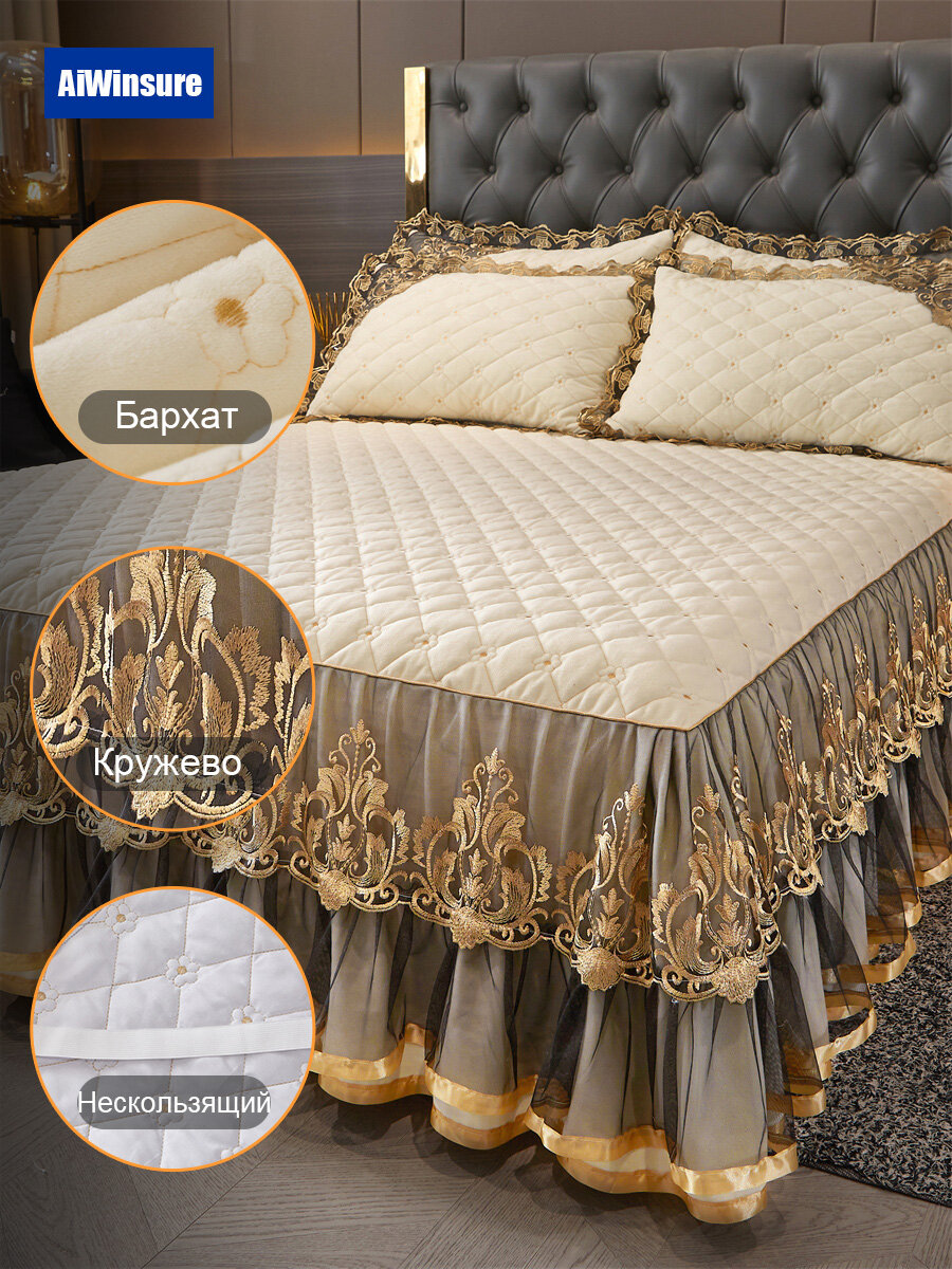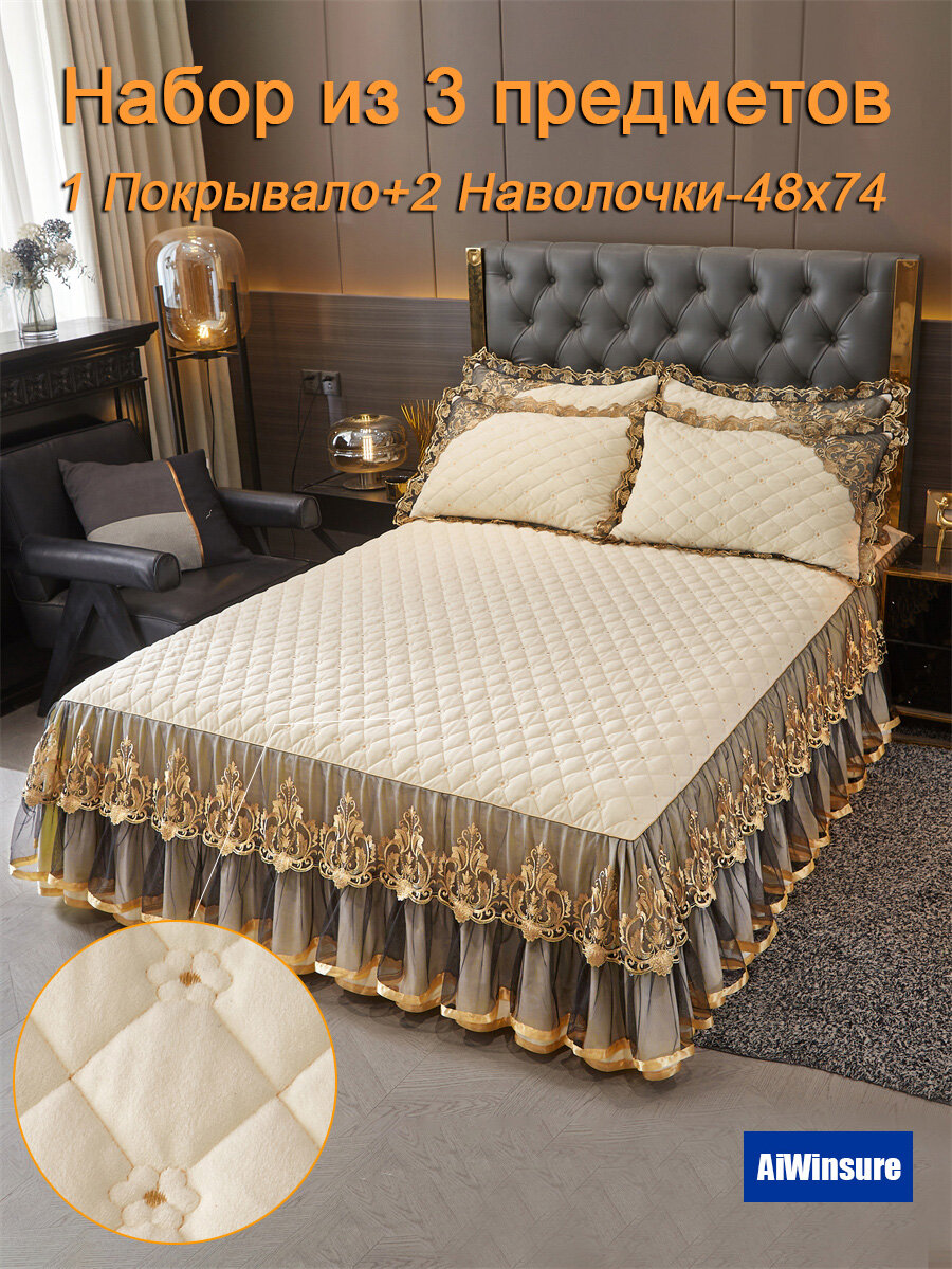 Комплект с покрывалом AiWinsure 160×200, наволочки 48х74, ткань бархат, крем: сравнение цен, характеристики, фото, актуальное наличие и цены.