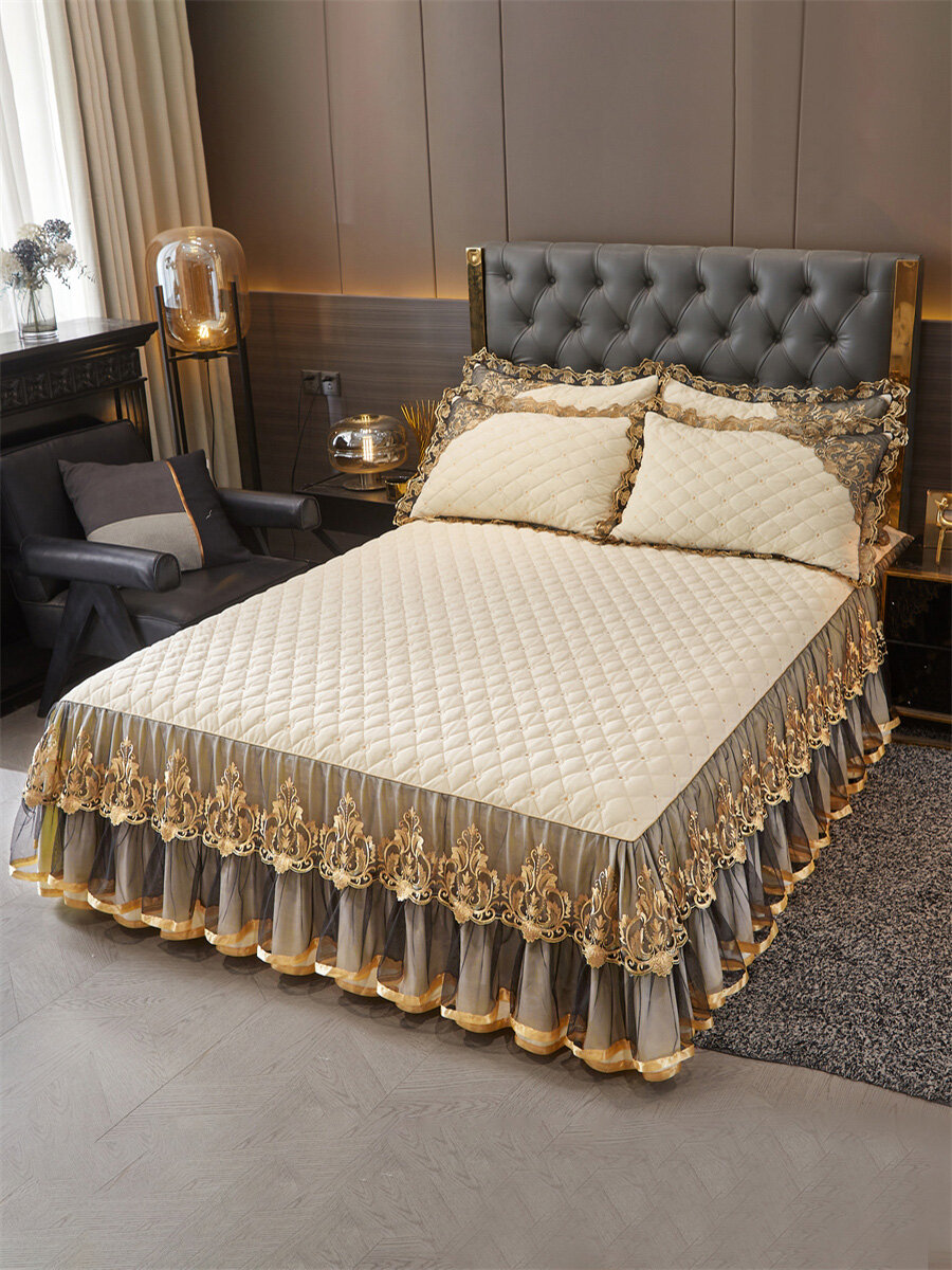 (2) Стильный образ: Стеганый топ с юбкой с оборками длиной 45 см, простой и элегантный, дополнит любой интерьер спальни и обеспечит вам комфортный сон.