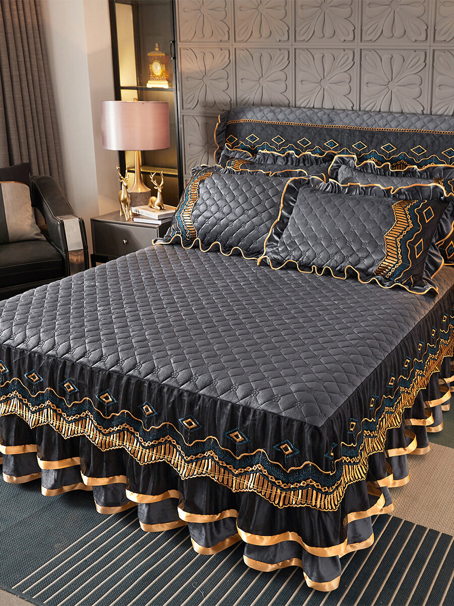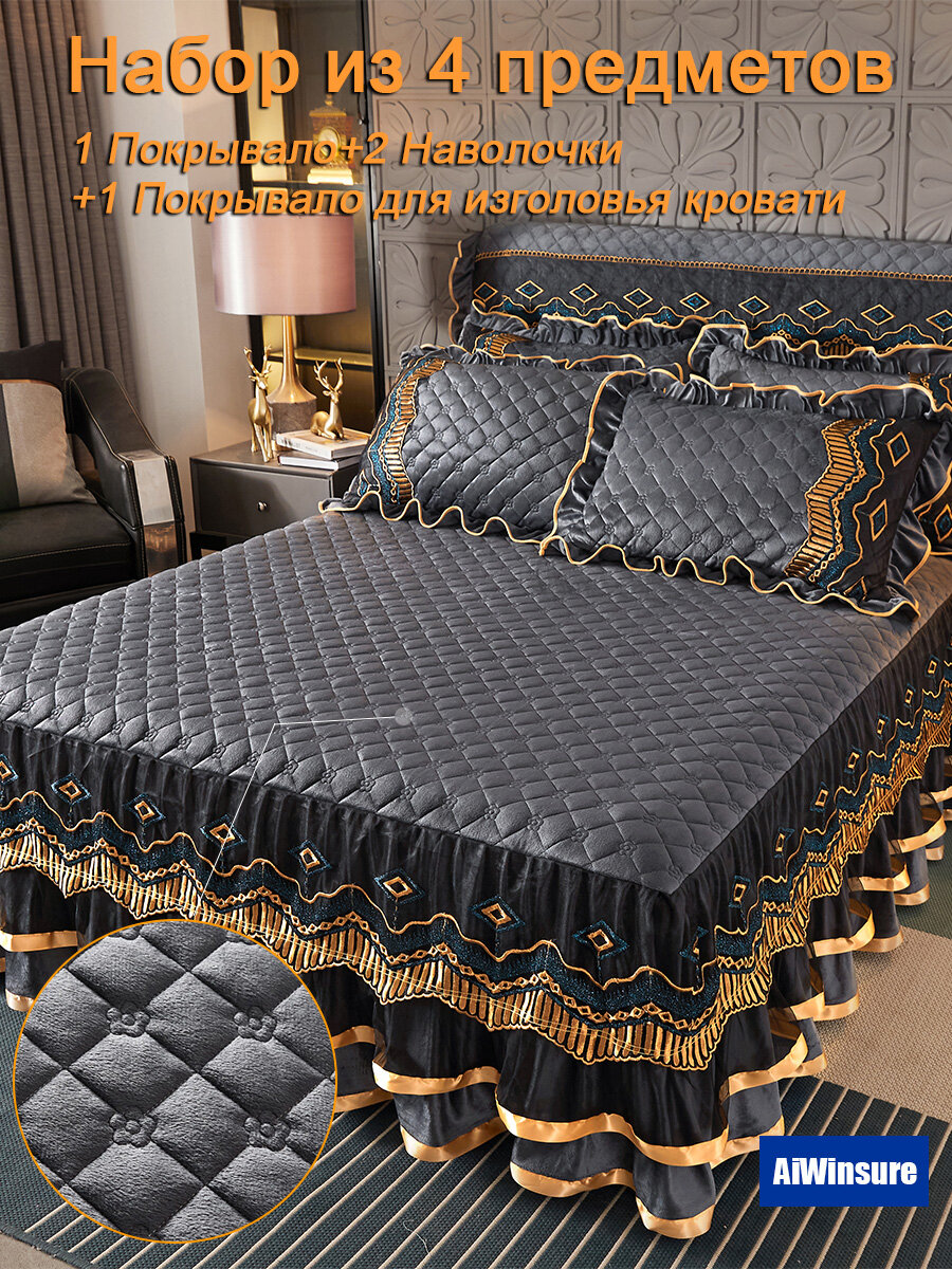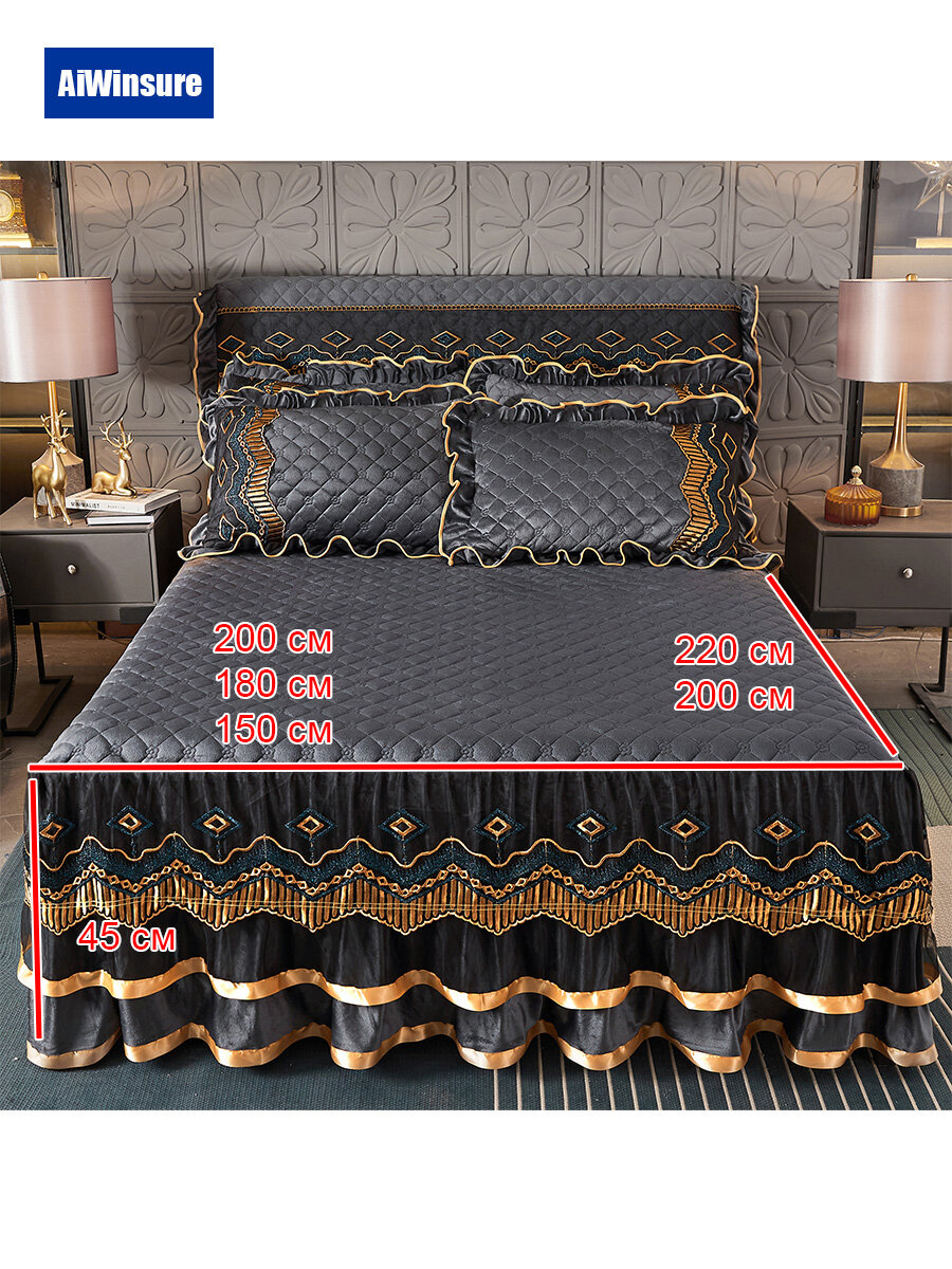 Представляем вашему вниманию комплект покрывал из плотного бархата AiWinsure, которые идеально подойдут для того, чтобы добавить роскоши в вашу спальню. Стеганое одеяло в цветочек и золотая вышивка не только добавляют элегантности, но и обеспечивают долговечность и мягкость для комфортного ночного сна. Оборки придают покрывалу шик и женственность, создавая теплую и располагающую атмосферу. Наше постельное белье, изготовленное из высококачественных бархатных материалов, теплое и дышащее, идеально подходит для зимы.