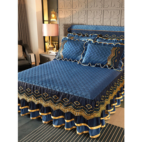 Комплект с покрывалом AiWinsure покрывало на кровати с наволочками бархат, синий, 150×200