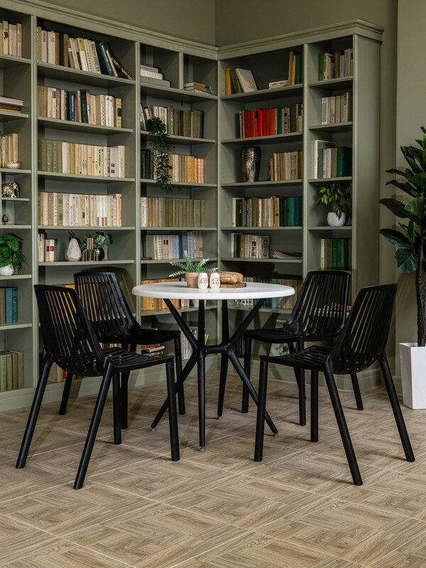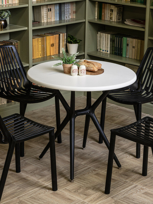 Купить Комплект садовой мебели: черно-белый стол Royal Family TOM + 4 черных стула NICO с доставкой по всей России.