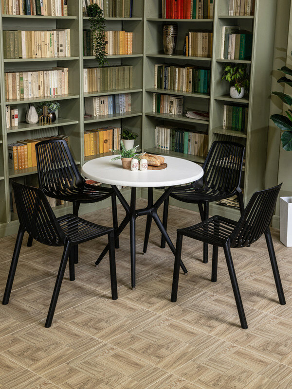 Комплект садовой мебели: черно-белый стол Royal Family TOM + 4 черных стула NICO: сравнение цен, характеристики, фото, актуальное наличие и цены.