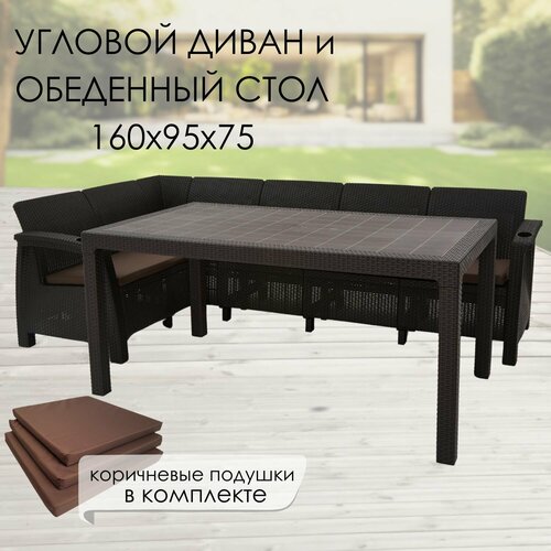 Садовая мебель комплект. Диван угловой и стол обеденный 153х79, мокко (подушки коричневого цвета): сравнение цен, характеристики, фото, актуальное наличие и цены.