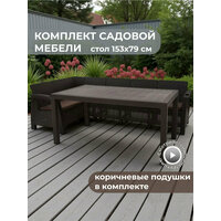 Садовая мебель комплект. Диван угловой и стол обеденный 153х79, мокко (подушки коричневого цвета): сравнение цен, характеристики, фото, актуальное наличие и цены.