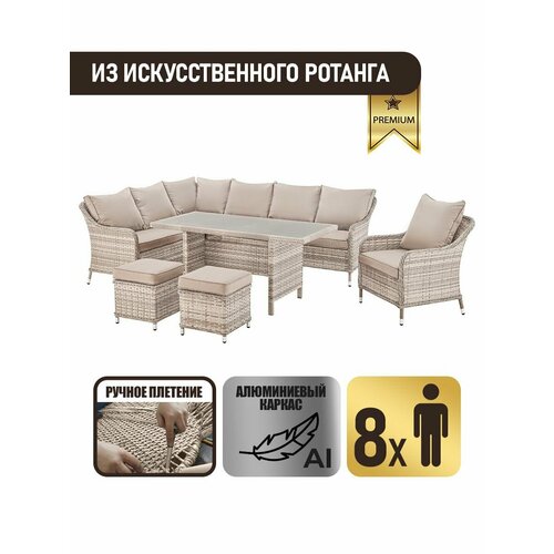 Искусственный ротанг обеспечивает легкость в уходе: мебель быстро очищается от загрязнений, а внутренние части не подвержены гниению или механическим повреждениям. Это делает комплект отличным выбором для дачников, а также для использования в общественных местах, таких как кафе или парки.