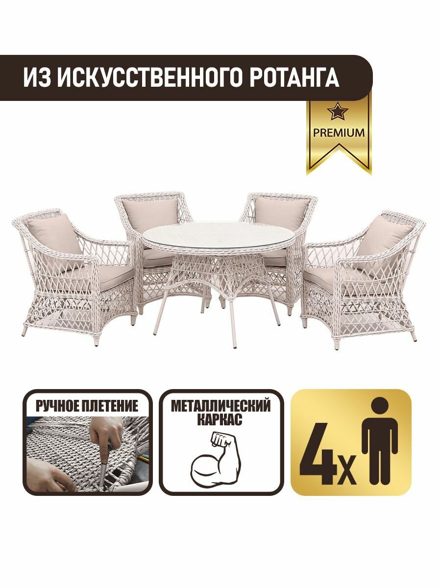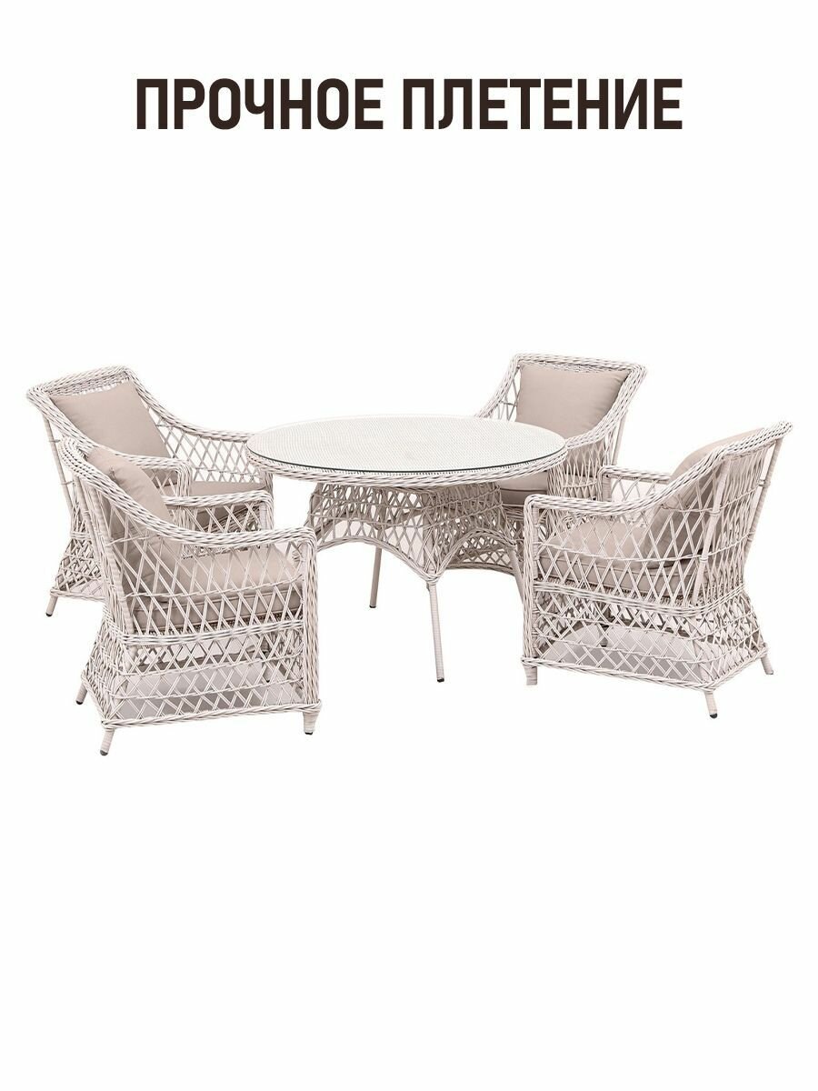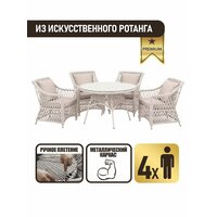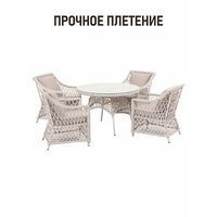 Комплект садовой мебели для дачи из искусственного ротанга Пикник-4 Раунд в серо-бежевом исполнении станет отличным вариантом для обустройства уютной зоны отдыха на вашем участке. Этот стильный и функциональный набор идеально подходит как для дачного использования, так и для уютных семейных посиделок на открытом воздухе.