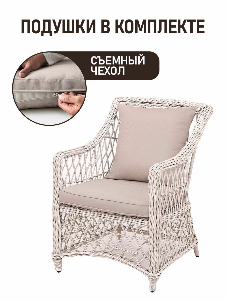 Конструкция мебели из ротанга отличается легкостью и прочностью, что позволяет легко перемещать ее по вашему саду или террасе. Кроме того, серо-бежевый цвет придаст вашему пространству современный и стильный вид, легко вписываясь в любой ландшафт и интерьер.