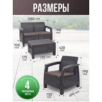 Размеры кресла, см 75 х 70 х 79 см , Размеры стола, см 77 х 57 х 42 см, Размеры дивана, см 128 х 70 х 79 см