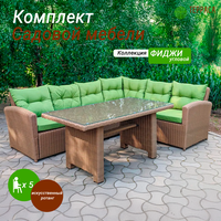 Купить Комплект садовой мебели «Фиджи», искусственный ротанг, угловой диван, 5 персон, обеденный стол, коричневый с доставкой по всей России.