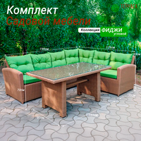 Комплект садовой мебели «Фиджи», искусственный ротанг, угловой диван, 5 персон, обеденный стол, коричневый: сравнение цен, характеристики, фото, актуальное наличие и цены.