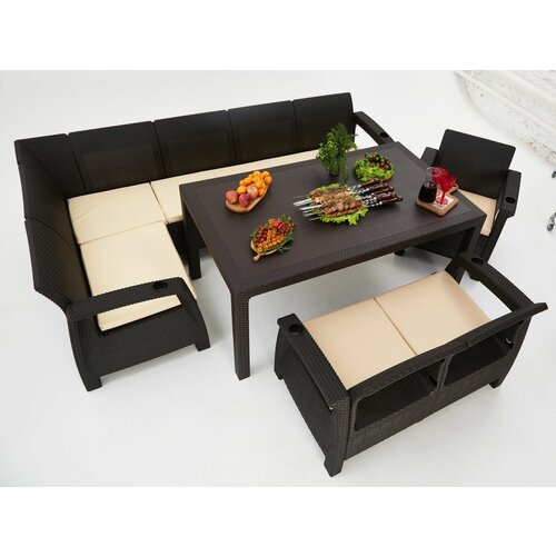 Купить Комплект садовой мебели HomlyGreen 5+2+1+обеденный стол 153х79, с комплектом бежевых подушек с доставкой по всей России.