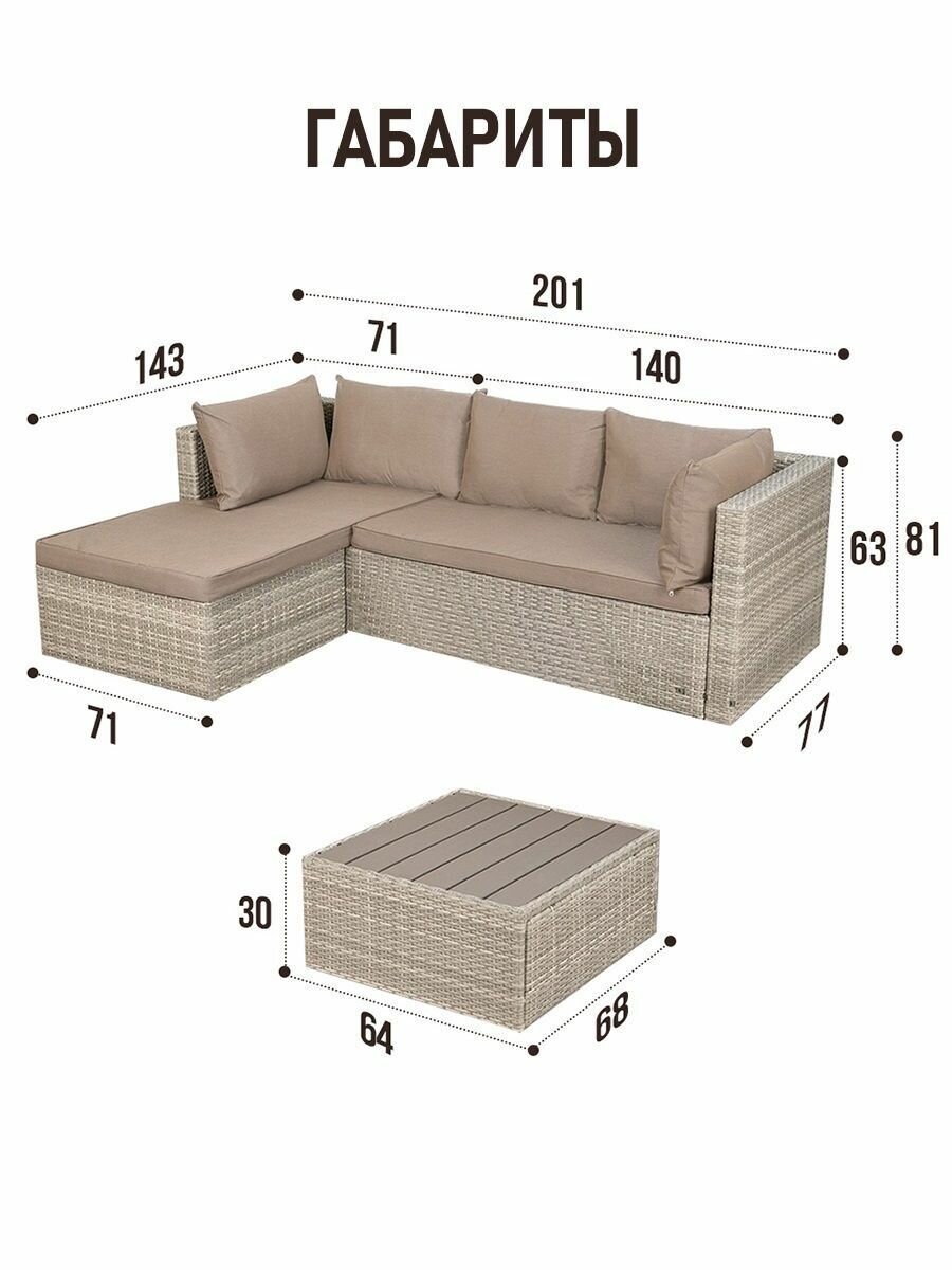 Комплект садовой мебели из искусственного ротанга для дачи и дома Гардини, серый: сравнение цен, характеристики, фото, актуальное наличие и цены.