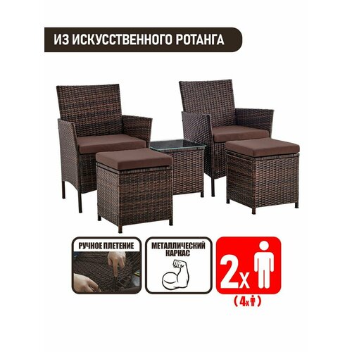 Мебель из ротанга выглядит элегантно и современно, создавая комфортные условия для отдыха на свежем воздухе. Комплект включает в себя удобные кресла и стильный стол, которые идеально подойдут для чаепитий с друзьями или вечерних посиделок с семьей. Благодаря использованию искусственного ротанга, данная мебель обладает высокой стойкостью к внешним воздействиям, что делает ее идеально подходящей для использования на открытых площадках.