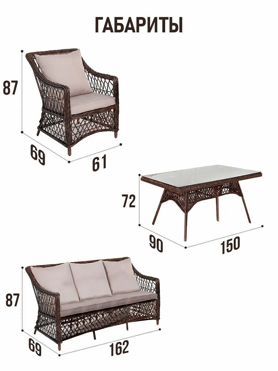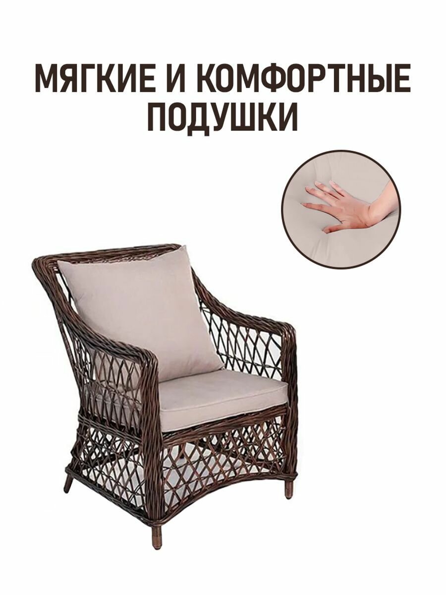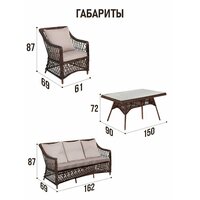 Мебель из ротанга отличается высокой прочностью и устойчивостью к внешним воздействиям, что делает этот комплект отличной покупкой для долгосрочного использования. Искусственный ротанг, использованный в производстве, не боится влаги и солнечных лучей, поэтому вы можете смело оставлять его на улице даже в непогоду.