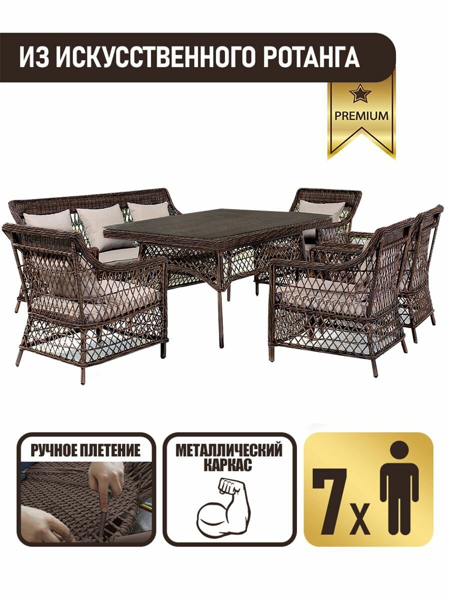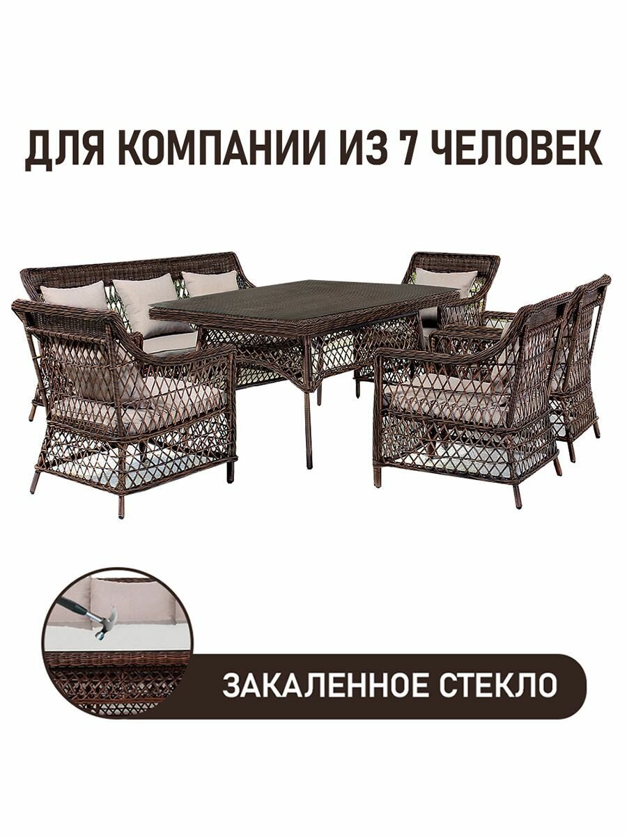Представляем вашему вниманию комплект садовой мебели из искусственного ротанга "Пикник-7+" в стильном шоколадном цвете. Этот набор — идеальное решение для вашего дачного участка или террасы, позволяющее создать уютную атмосферу для отдыха с семьей и друзьями. Он состоит из удобных стульев и стильного стола, что делает его идеальным выбором для любого уголка вашего сада.