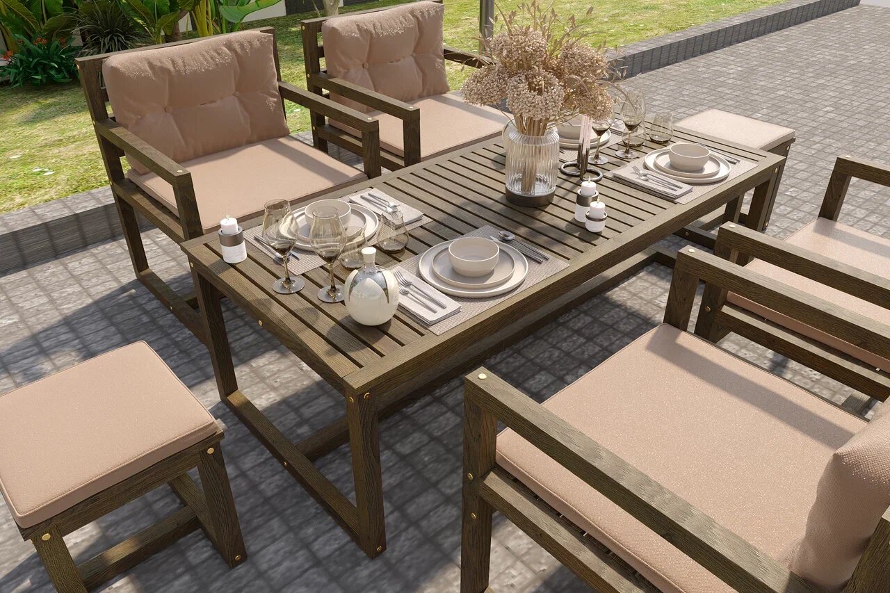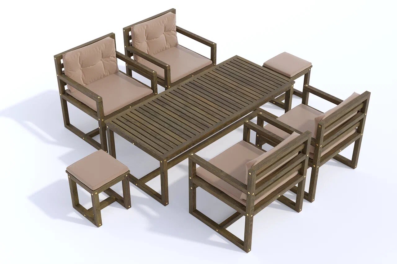 Комплект садовой мебели из лиственницы, 7 предметов стол и кресла. Уличная мебель, МебеЛи.: сравнение цен, характеристики, фото, актуальное наличие и цены.